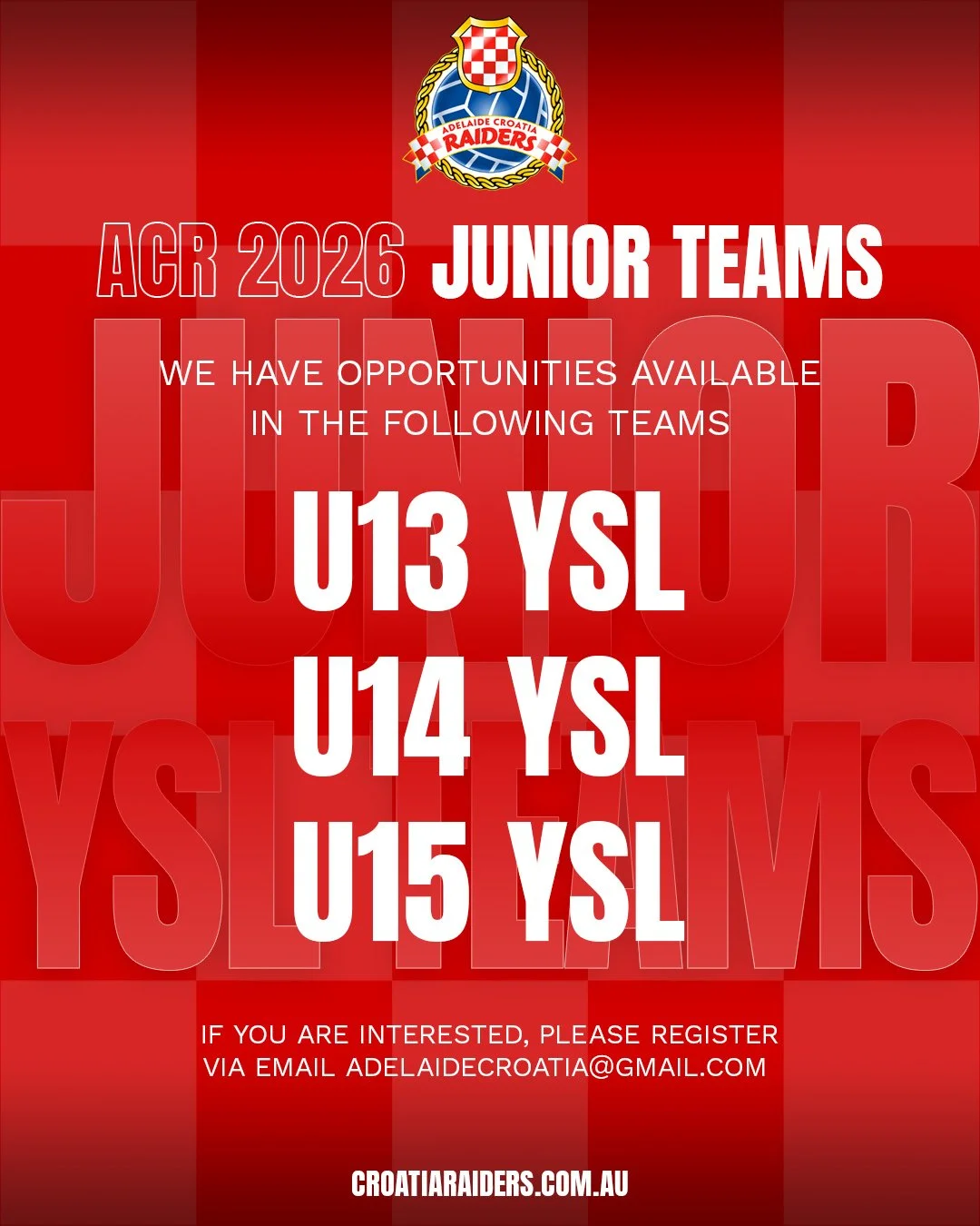 There are still some spots available in our U13 YSL, U14 YSL and U15 YSL teams for season 2026.